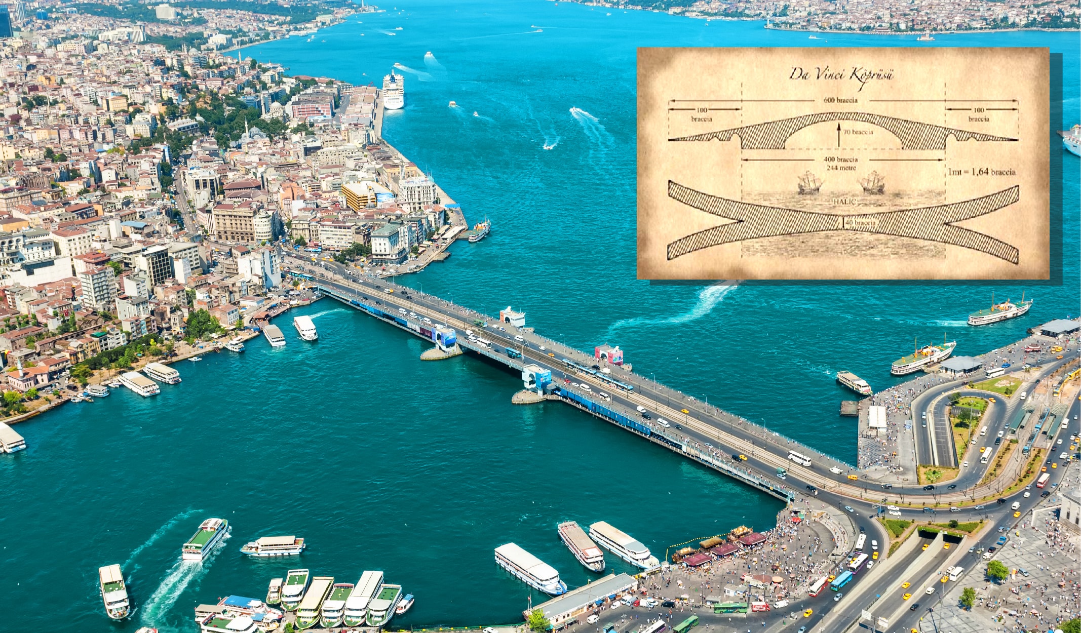 Haliç üzerindeki köprülerin tarihi değeri en yüksek olanı şüphesiz ki Galata Köprüsü’dür. Bir de hiç inşa edilmediği halde adından söz ettiren bir köprü vardır ki o da Galata Köprüsü yapımından önce, 1502 yılında Leonardo Da Vinci’in tasarladığı ve Sultan II. Beyazıt’a ilettiği bilinen köprüdür.