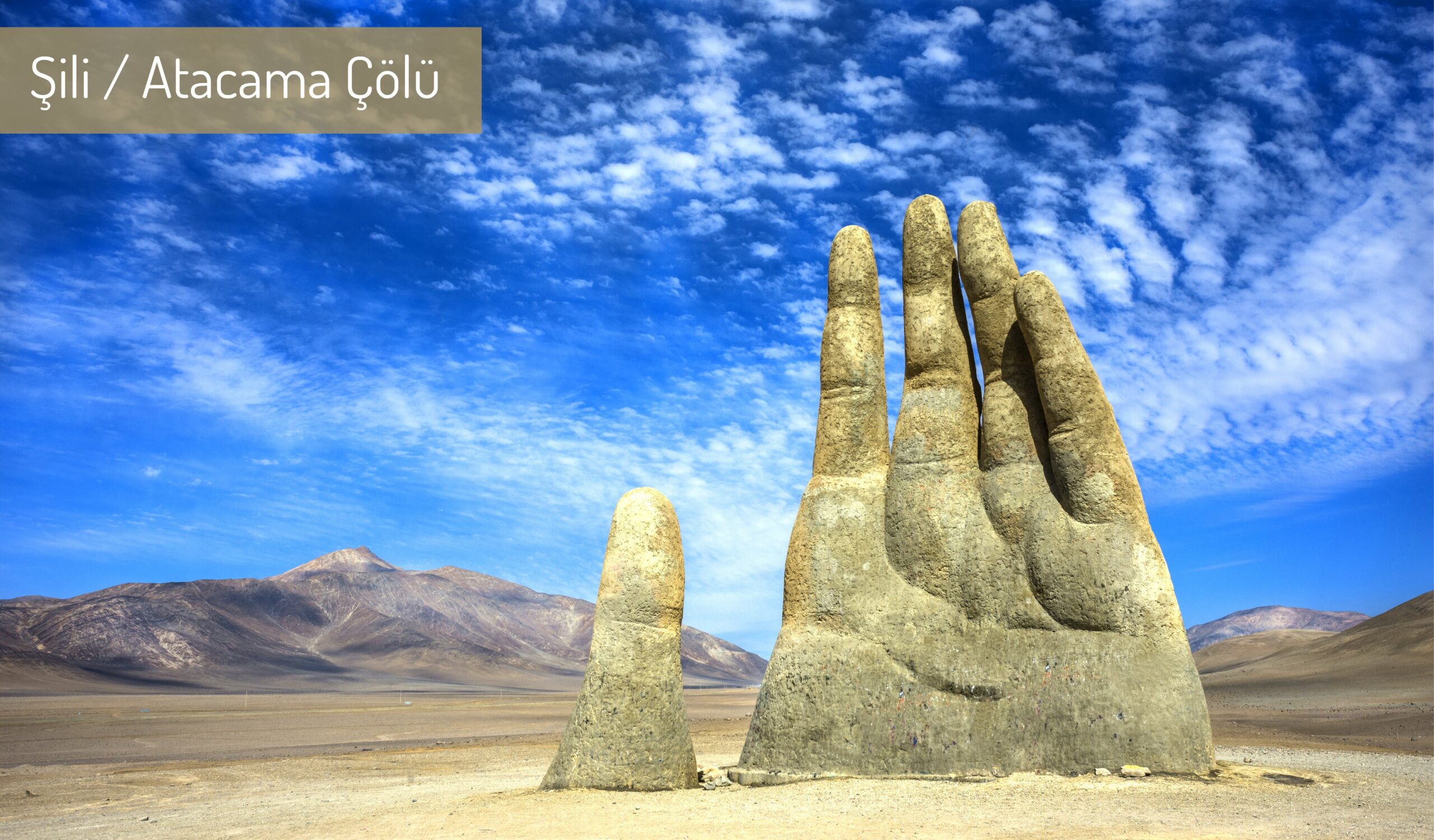 “La Mano del Desierto” yani Çölün Eli… Şili’deki Atacama Çölü’nün ortasındaki dev eli görenler onun eski uygarlıklardan kalma bir eser olduğunu düşünse de yapımı 1992 yılında tamamlanmış. Bölgeye yakın yerde yaşayan Antofagasta yerlileri çölde bir hareket yaratmak için sipariş vermişler ve heykeltraş Mario Mario Irarrázabal da demir iskelet üzerine dökülen çimento ile bu eseri yapmış.
