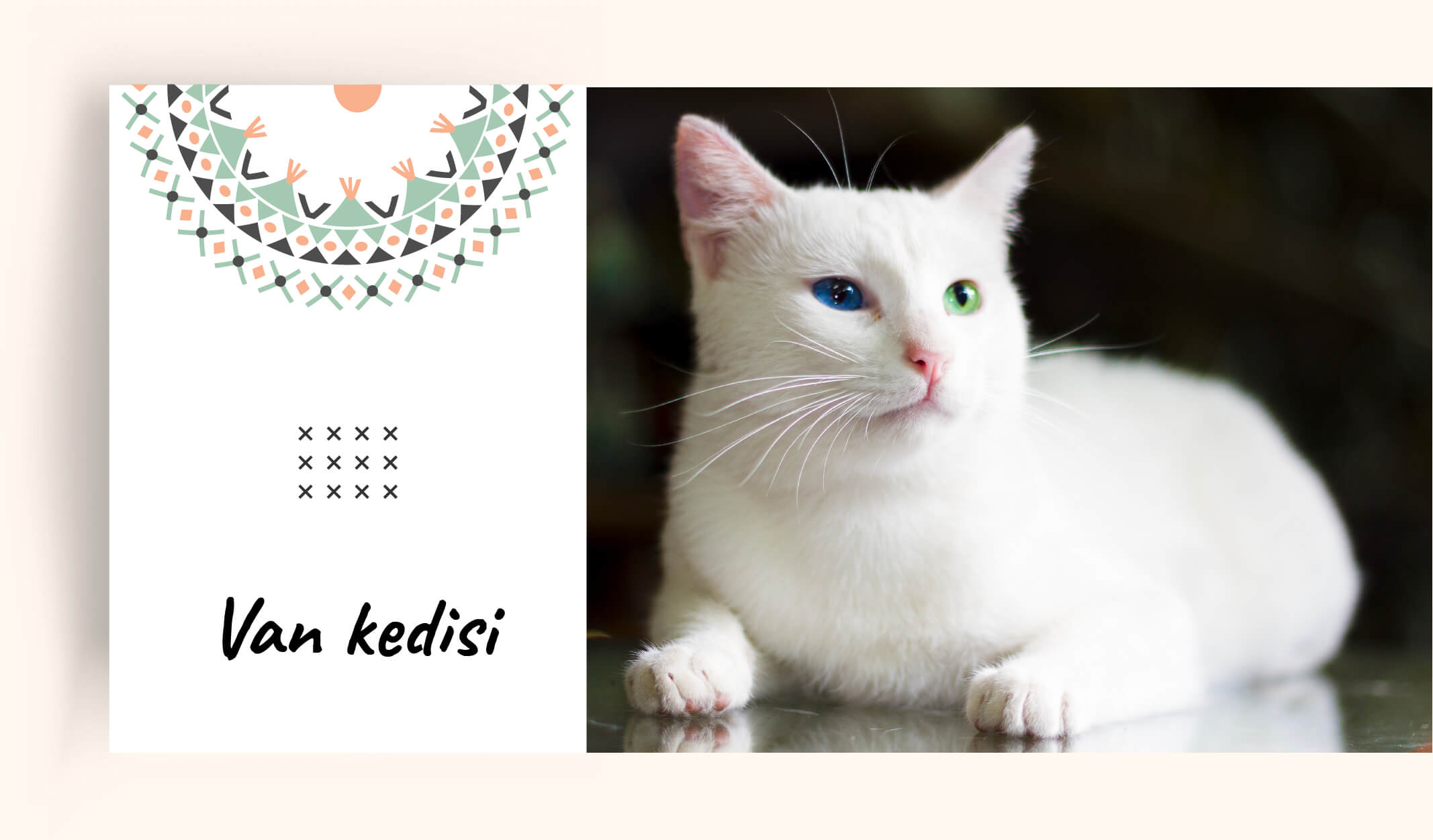 Japonya’da düzenlenen Dünya Kedileri Güzellik Yarışması’nda Van kedisinin birinci seçildiğini biliyor muydunuz? Peki ya Van’da kediler için yüzme havuzu açıldığını biliyor muydunuz? Çünkü bu asil canlılar yüzmeyi çok seviyor ve bu özelliklerini kaybetmemeleri için de Vanlılar çaba gösteriyor. Van kedilerinin bir gözü mavi bir gözü kehribar rengi olabildiği gibi, ikisi de mavi ya da ikisi de kehribar rengi olabiliyor.