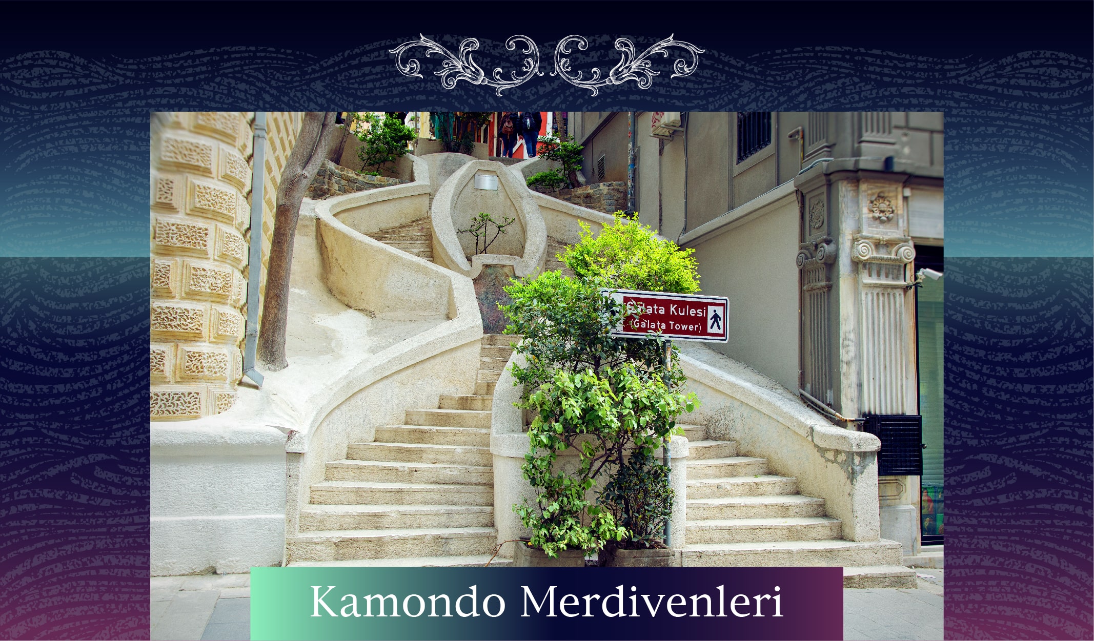Yedi tepe üzerine kurulmuş Tarihî Yarımada’nın merdivenleri şehre ayrı bir güzellik katar. Yapıldığı dönemin estetiğini yansıtan bu yapılar şehre gelen turistler için uğrak bir noktadır. En bilinenleri ise Bankalar Caddesi’ni Karaköy’e bağlayan Kamondo Merdivenleri, Çırağan Caddesi’ni Yıldız’a bağlayan Peri Çıkmazı ve Bebek semtinde Cevdet Paşa Caddesi ile Özlemli Sokağı’nı bağlayan 224 basamaklı Ehram Yokuşu’dur.