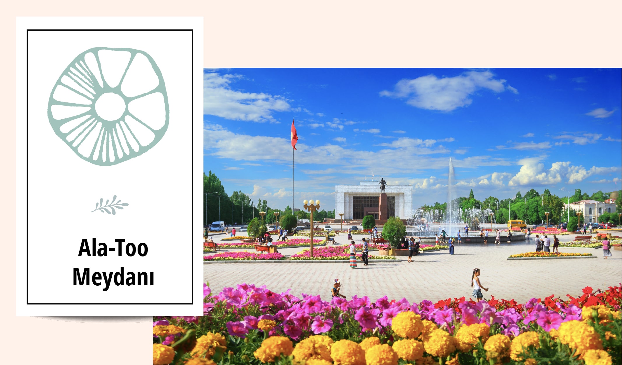Kırgızistan’ın başkenti, aynı zamanda da en büyük şehri, Bişkek… 1878 yılında Rusya tarafından kurulmuş, ilk zamanlarda ‘‘Frunze’’ olarak anılmıştır. Merkezinde yer alan Ala-Too Meydanı hem mimari hem de tarihi bakımdan şehrin simgesi olmuş bir yer. Meydan, farklı sokak şenliklerine ve her türlü resmi etkinliğe ev sahipliği yapıyor. Ala-Too Meydanı’nda yer alan özgürlük heykeli, tarih müzesi, çevresindeki renk renk çiçekler ve büyük havuz ziyaretçilerin oldukça ilgisini çekiyor.
