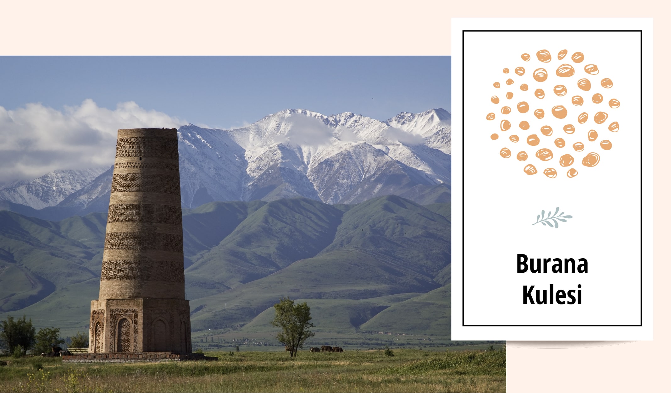 Etrafı dağlarla çevrili Yeşil Çu Vadisi ve ortasında yer alan Burana Kulesi başkent Bişkek’e çok yakın mesafede. Tarihin en önemli ticaret merkezlerinden biri olan İpek Yolu üzerinde yer alıyor. Karahanlılar’ın başkenti Balasagun’dan miras kalan kule ilk inşa edildiğinde 45 metreymiş ancak 15. yüzyılda yaşanan deprem sebebiyle 25 metreye düşmüş. Mükemmel işçilik ürünü süslemelerin hâkim olduğu yapı, Karahanlılar döneminde hem minare hem de gözetleme kulesi olarak kullanılmıştır.