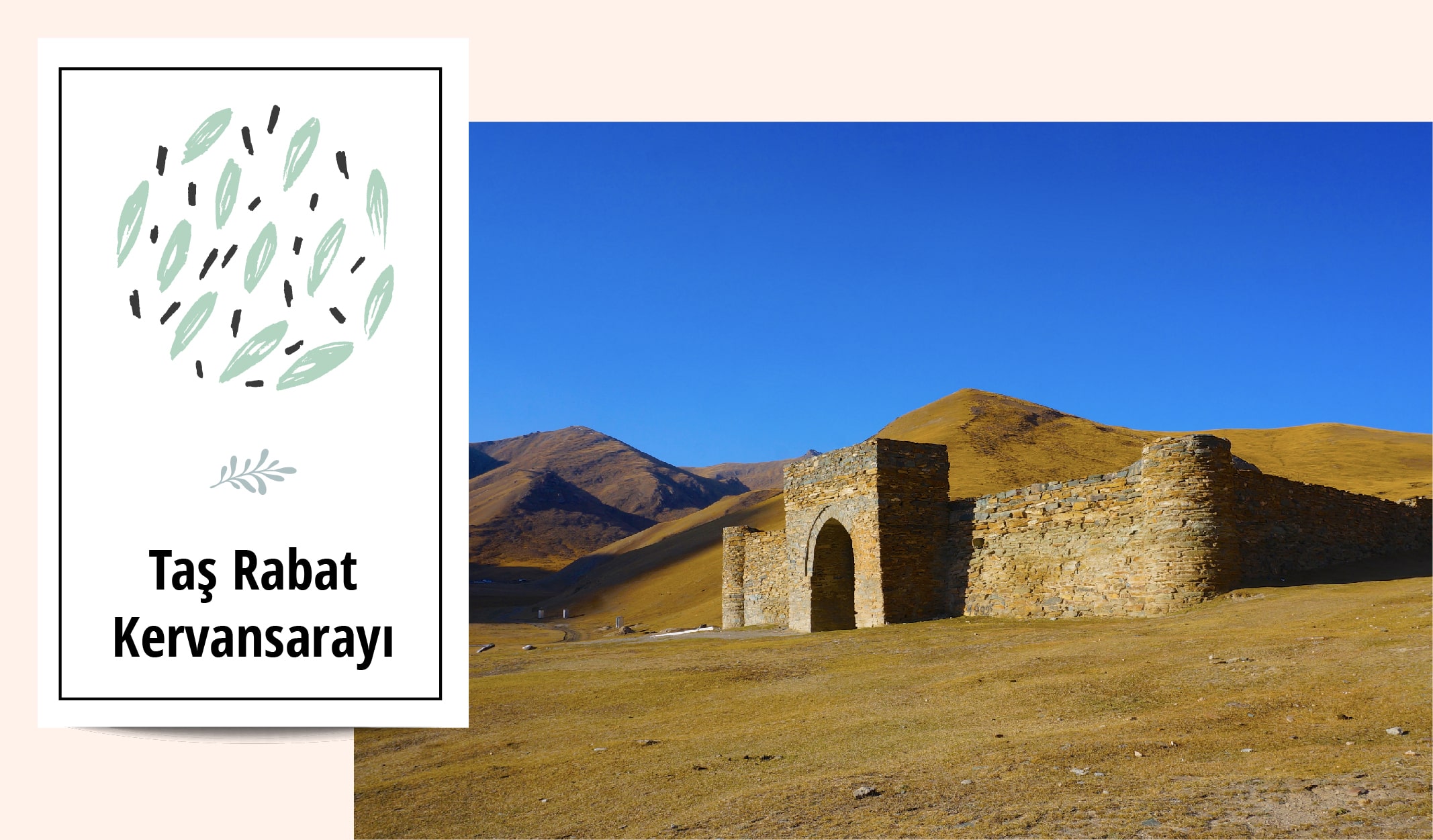 Turistlerin sıklıkla tercih ettiği bir diğer yapıt ise Taş Rabat Kervansarayı. Kırgızistan’ın doğusundaki Narın Eyaleti’nde bulunmaktadır. Yapım tarihi kesin olarak bilinmese de bölgede 10. yüzyıldan kalma kalıntılar olduğu bilinmekte. Politik ve ticari bir öneme sahip olan bu kervansaray İpek Yolu üzerinde bulunmaktadır. Çin’den gelen kervanların ibadet etme, dinlenme veya soğuk havalardan korunma gibi ihtiyaçlarında büyük rol oynamıştır.