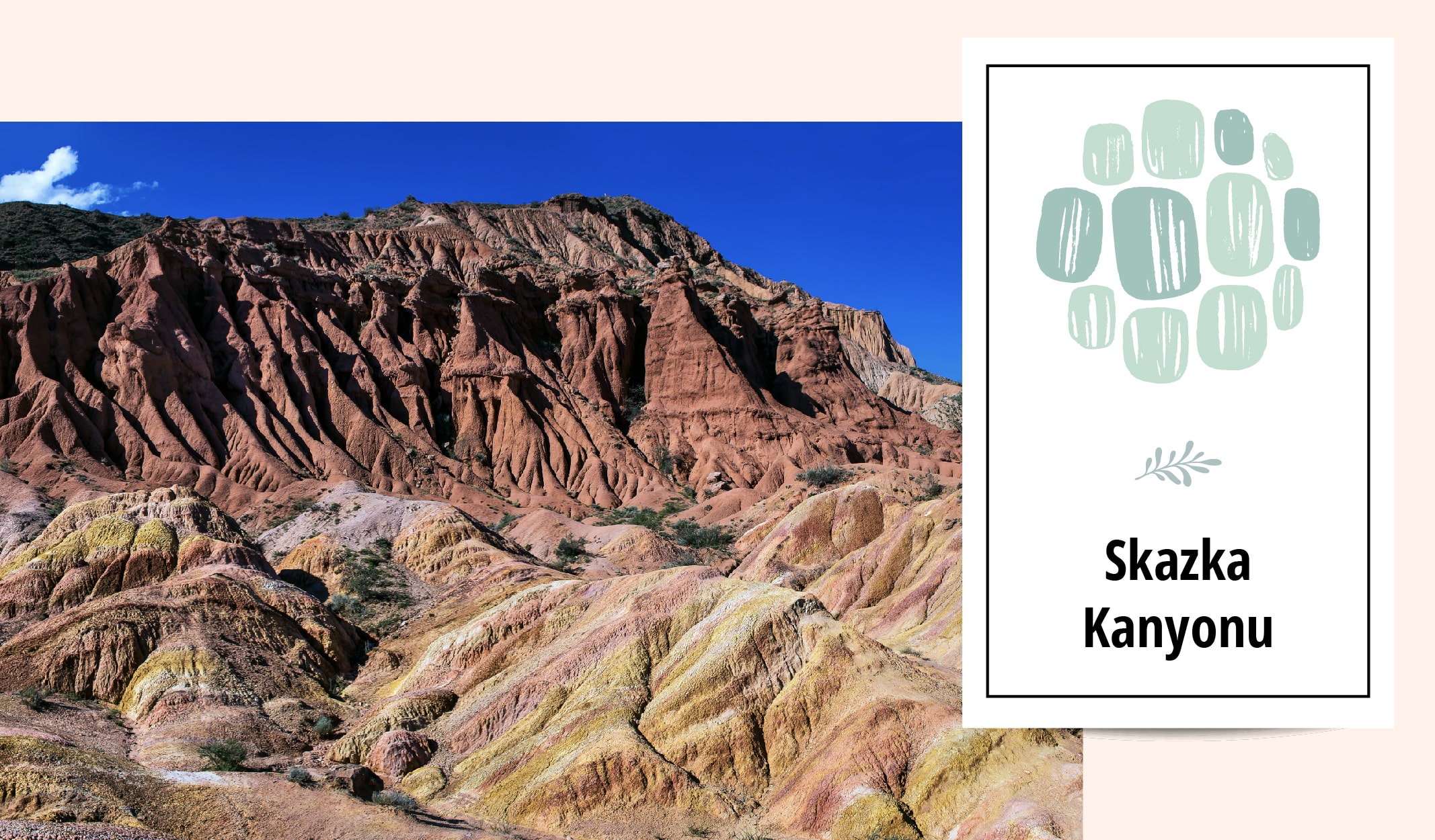 Kırgızistan’ın belki de en sıra dışı adresi Skazka Kanyonu… Kırmızı kil ve kumtaşından oluşan kayaçların uzun yıllar boyunca rüzgârın, suyun, buzun ve havanın etkisiyle aşınması bu muhteşem görüntüyü ortaya çıkarmış… Oldukça tuhaf ve ilgi çekici olması buraya Masal Kanyonu isminin verilmesine sebep olmuştur. Rusçada “skazka” kelimesi de “masal” anlamına geliyor. Sahip olduğu benzersiz manzara ile sarı, turuncu, kahverengi ve pembe tonlarını bir arada görüp deneyimleyebileceğiniz bir adres.