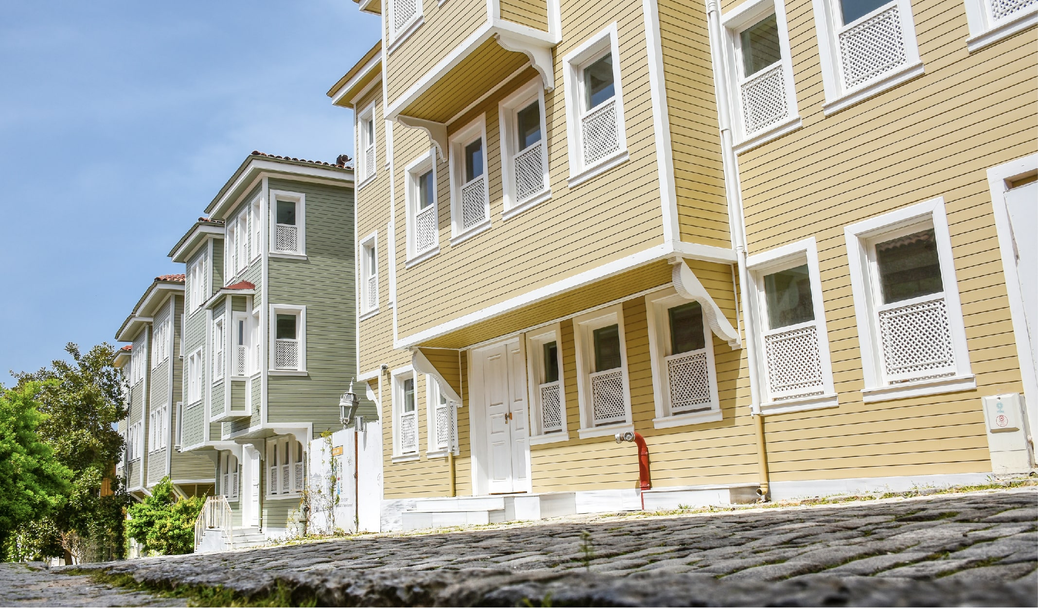Evlerin kapı ve pencereleri ise Ayasofya’ya bakar. Tarihî yapının bahçesini çevreleyen duvar, sokağın karşı kıyısına düşen tek yapıdır.