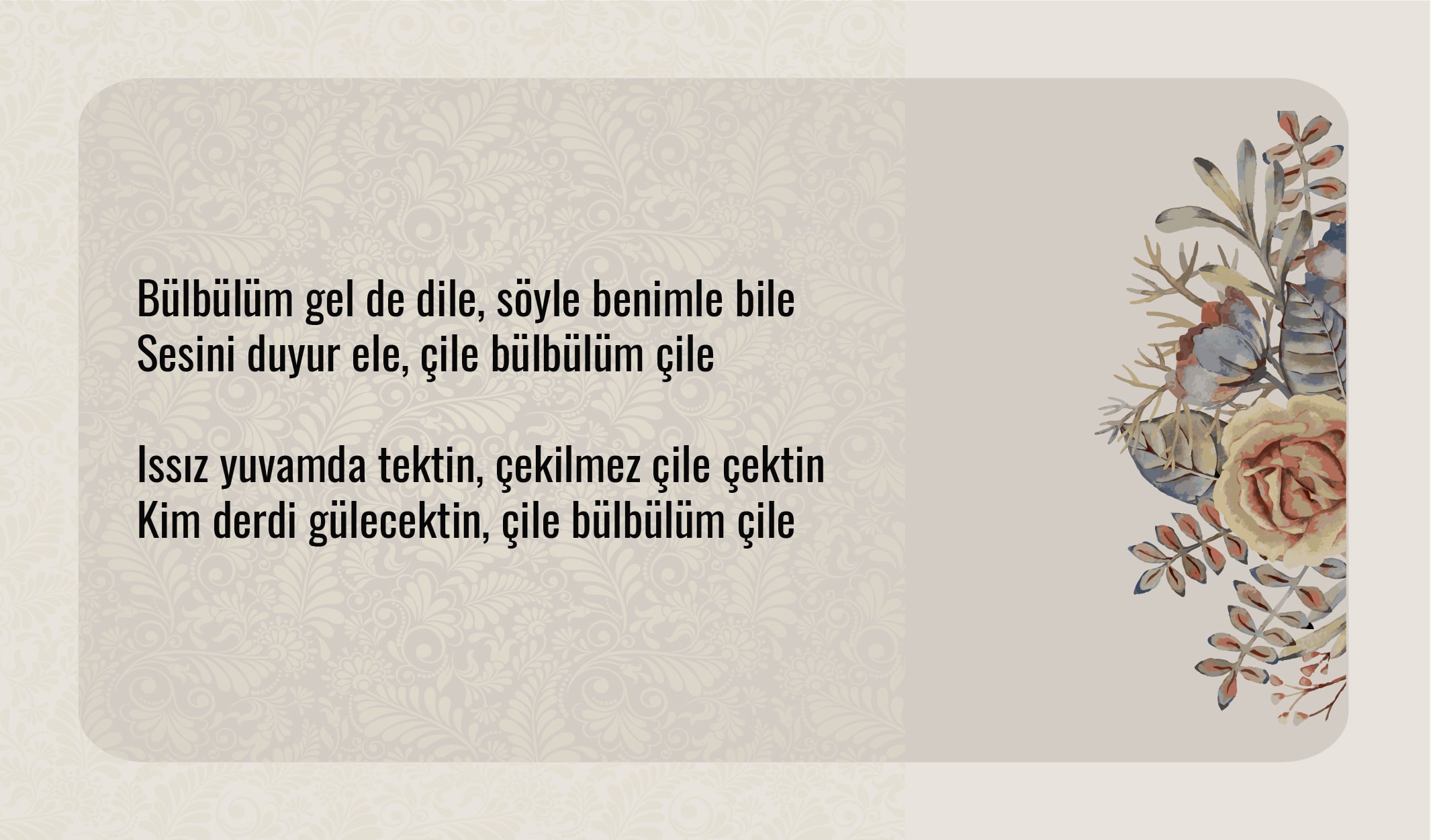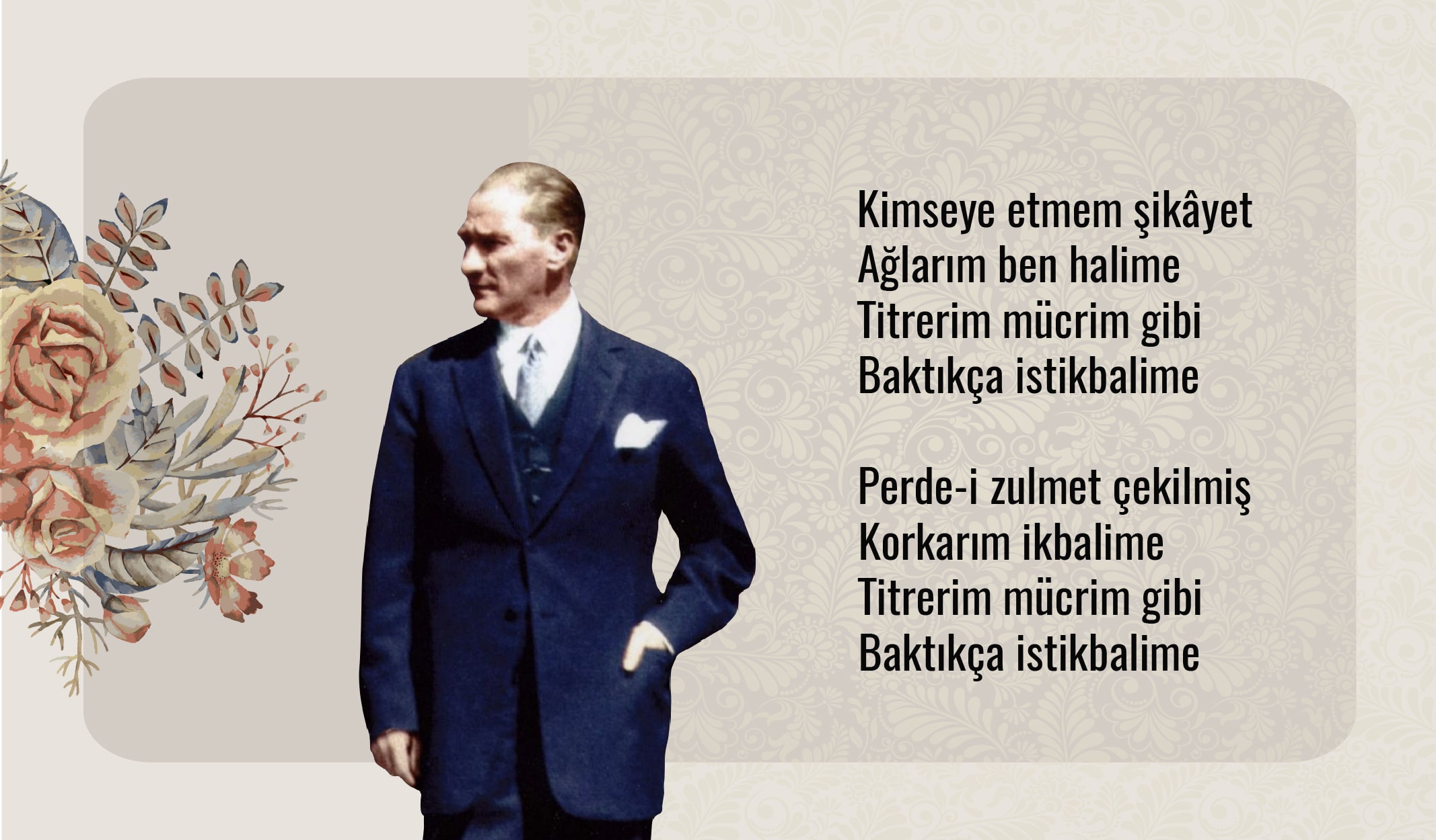 Atatürk’ün müzikle olan ilişkisini anlamak için şu sözüne kulak vermek gerekir: “Hayatta musiki lazım değildir, çünkü hayat musikidir.” Müziği hayatın kendisiyle eşitleyecek kadar önemseyen liderin, Safiye Ayla’yı, Müzeyyen Senar’ı, Münir Nurettin Selçuk’u, tamburi Selahattin Pınar ve kemani Nubar Tekyay’ı canlı dinlemeyi çok sevdiği bilinir. Katıldığı ilk ve tek musiki konseri ise yine kendi organize ettiği, Ankara radyosu sanatçılarından Melek Tokgöz’ün verdiği konser olmuştur. Biz de sayfamıza Atatürk’ün sözlerini, nağmelerini dinlemekten keyif aldığı şarkıları taşımak istedik…