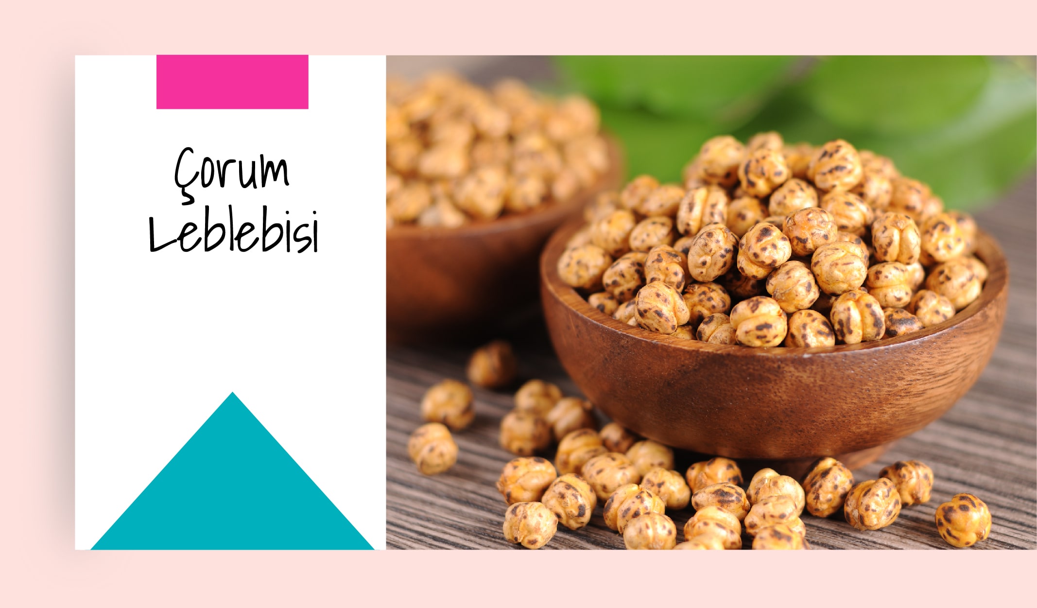 Çorum deyince hemen hepimizin aklına ilk gelen leblebidir ve coğrafi olarak tescillenen ilk leblebi de Çorum leblebisidir. Keşkek, etli pilav, yayla çorbası, mantı ise kentin mutfak kültüründe başı çeken yemekler arasındadır. Yine yöreye özgü İskilip dolması ise ustası tarafından yapılması gerektiği ve oldukça zahmetli olduğu için özel günlerin yemeğidir.
