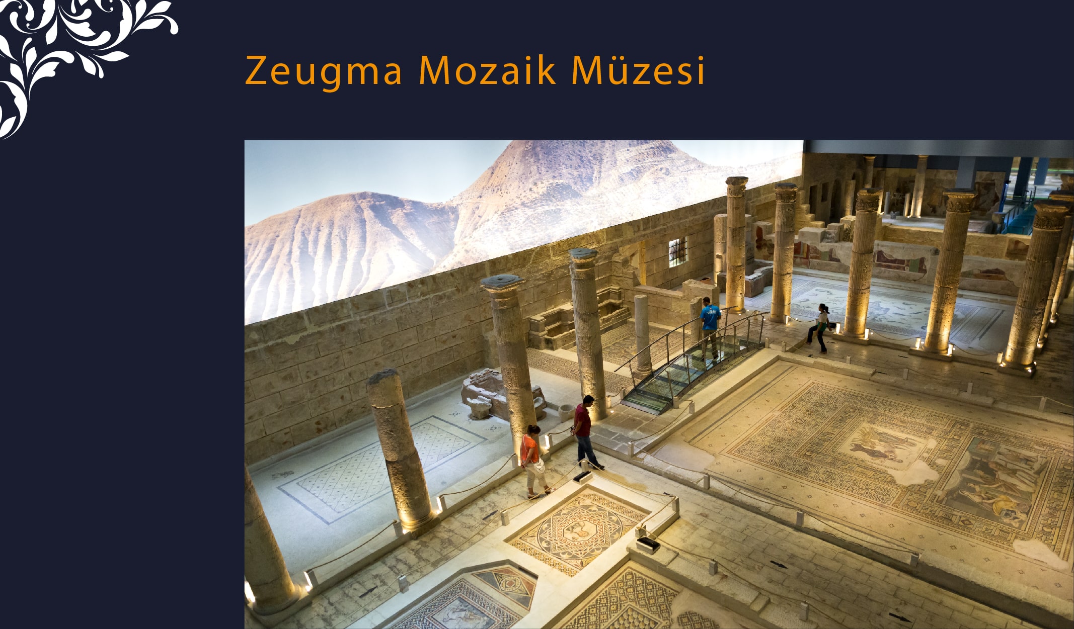 Zeugma Mozaik Müzesi, 2014 yılında Hatay Arkeoloji Müzesi açılana dek dünyanın en büyük mozaik müzesiydi. Burası Zeugma Antik Kenti’nden gelen mozaiklerin sergilendiği 2500 m2’lik bir alan ve Türkiye’nin yurt dışından turist çeken önemli mekânlarından biri. Meraklıları bilir ki 500 bin parçadan oluşan mozaikleri görmek, binlerce yıl önceye ait hikâyeleri mozaikler üzerinden okumak için dünyada gidilebilecek ilk adres Gaziantep’tir.