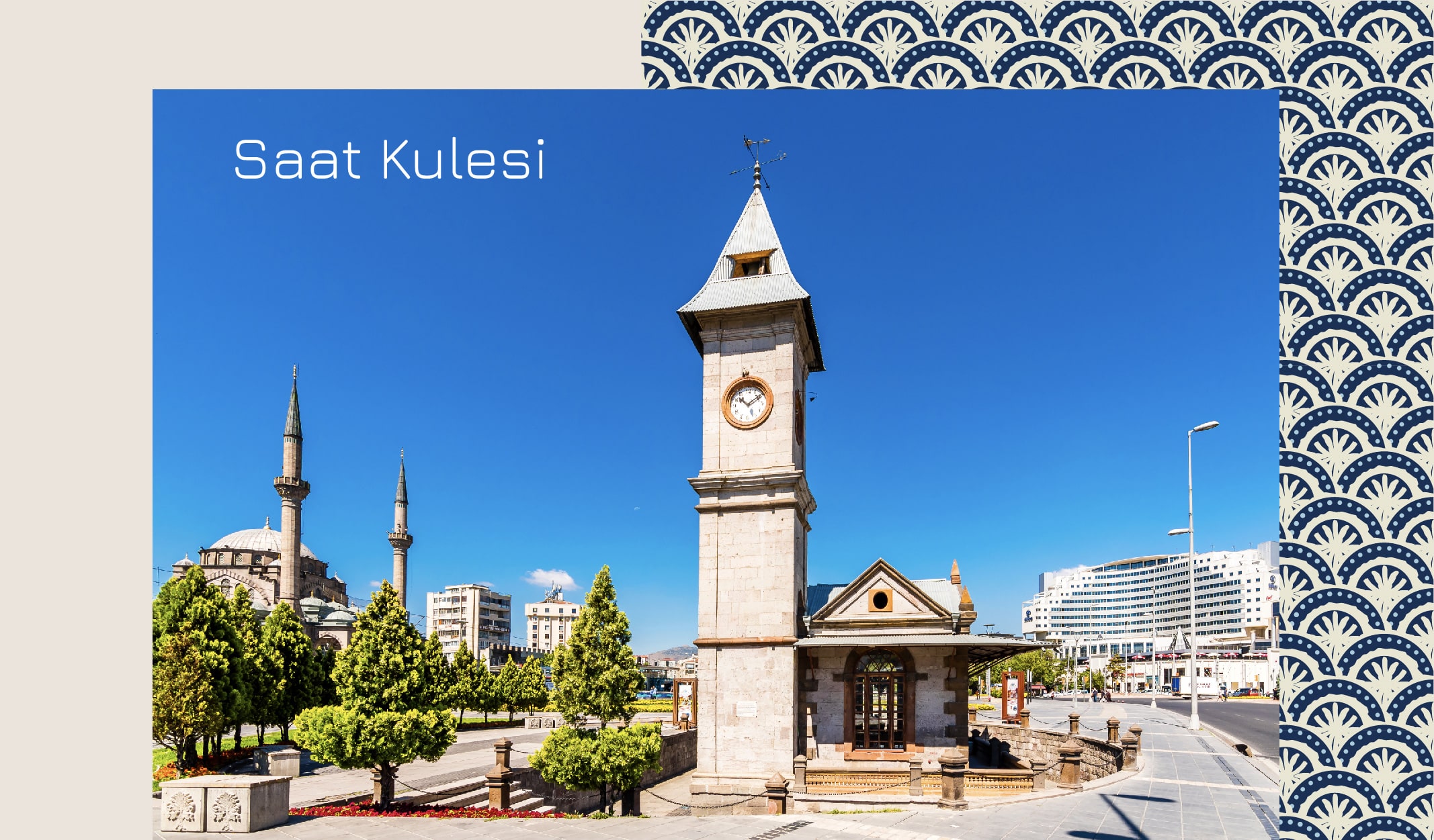 Yine şehir merkezinden ve yine tarihi bir yapı… Kayseri Saat Kulesi, II. Abdülhamit’in isteği ile Tavlusunlu Salih Usta’ya 1906 yılında yaptırılmış. 15 metre yüksekliğindeki kuleye içeriden kıvrımlı merdivenlerle çıkılırken, kulenin üstündeki piramit yapı saat çanını olabilecek en estetik haliyle muhafaza ediyor.
