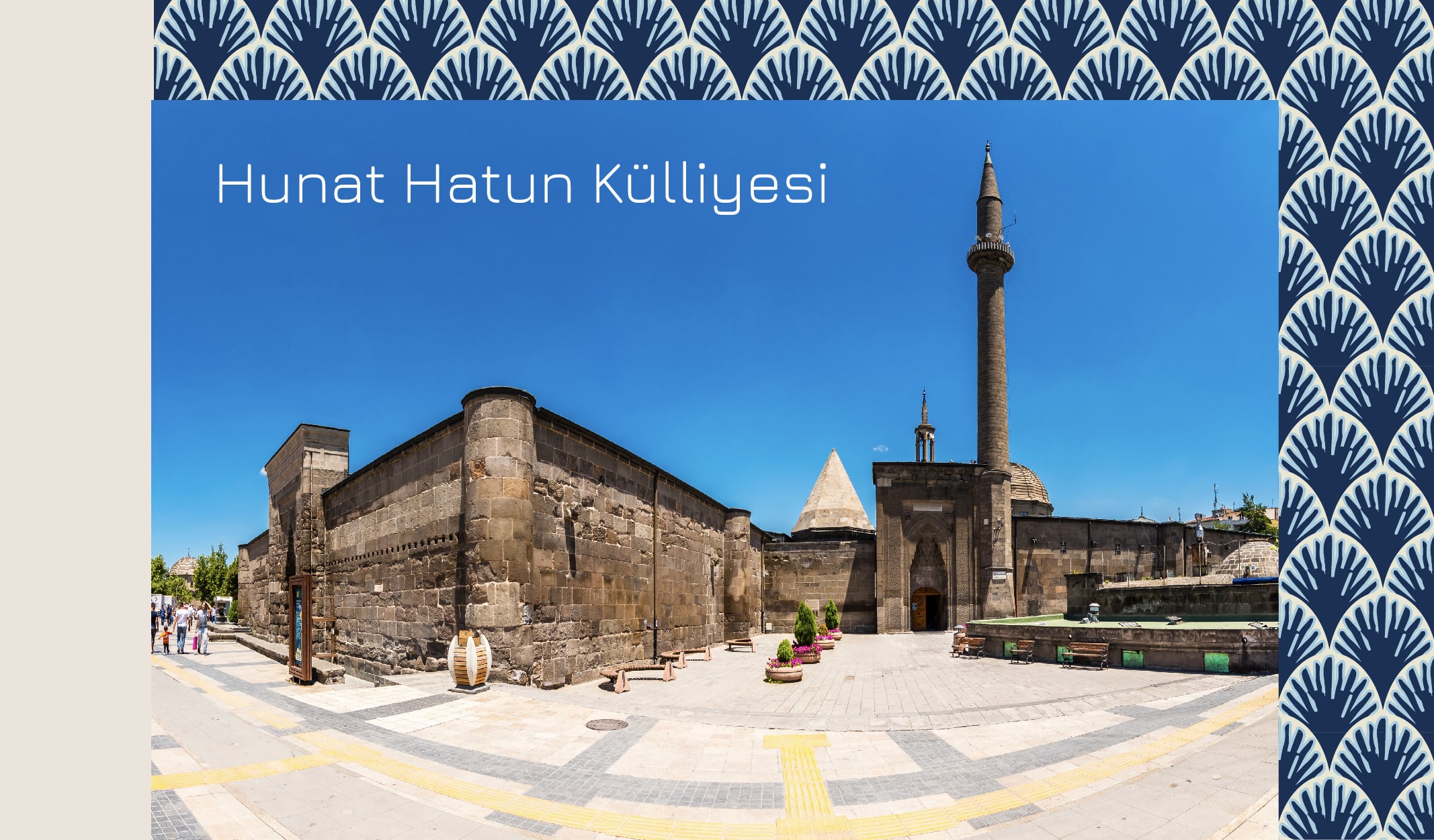 Kayseri, Selçuklu döneminden kalma yapıların en mühim adreslerindendir. Lala Paşa Camii, Alaca Kümbet, Sahabiye Medresesi ve sair. Hunat Hatun Külliyesi de bunlardan biridir ve kim tarafından ne için yaptırıldığı bakın kitabesinde nasıl yer almıştır: