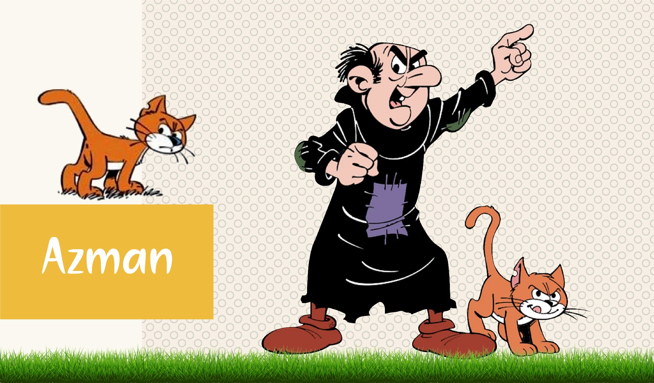 “Ah o Azman yok mu, o Azman!” Annelerimize sorsak direkt bu cümleyi kurardı, Şirinler’in baş belası Gargamel’in peşinden bir an olsun ayrılmayan kedisi Azman için. Biliyorsunuz Şirinler ne kadar iyiyse Gargamel de o kadar kötü bir karakterdi ve bu durum sahibine yürekten bağlı olan Azman’ı da kötü yapıyordu. Şirinlere kötülük yaptığında yüzünde beliren gülüşü, -tamam tamam kibar olmaya gerek yok- “sırıtışı” hatırlıyor musunuz? Yine de inanıyoruz, Gargamel’den yakasını bir kurtarsa içindeki iyilikle buluşacaktı, ama bir türlü olmadı…