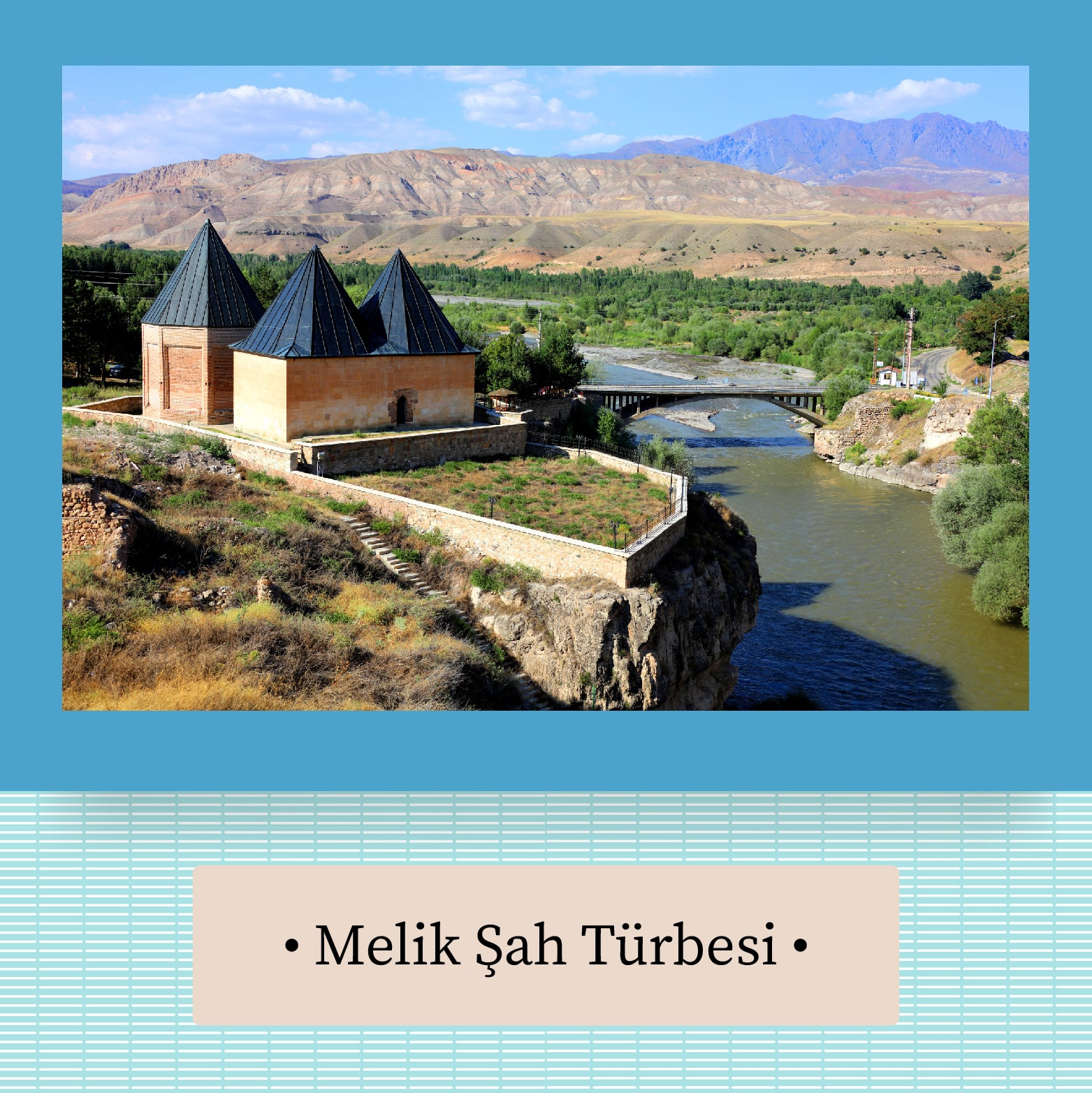 Kemah Kalesi’nin karşısında, Fırat’ın kollarından olan Karasu’nun kıyısında, Kemah Köprüsü’nün hemen ucunda yer alan kümbet Melik Şah’a ait… Fotoğraflara oldukça estetik ve hatta fantastik biçimde yansıyan kümbetin bulunduğu bölge Erzincan’ın en çok turist ağırlayan yerlerinin başında geliyor.