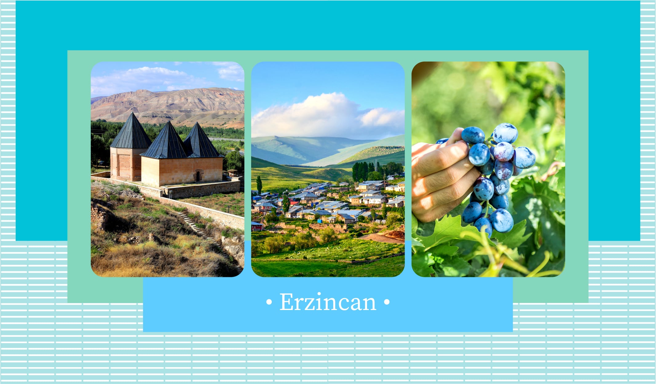 Erzincan mutfağından da birkaç isim sayalım, bakalım daha önce herhangi birini duymuş muydunuz? Gendirme, ayva kalyesi, kelecoş ve tatlı olarak gasefe. Bu arada dünyanın ilk ve tek patentli üzümü de Erzincan’ın Üzümlü ilçesine ait. Mayhoş tadı, sıfıra yakın şeker oranı ve saymakla bitmeyecek faydaları ile denk gelirseniz “cimin üzümü”nü tatmayı sakın ihmal etmeyin.
