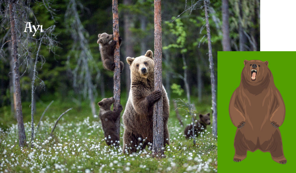 Ayılar, boylarından ziyade iri cüsseleri ve kendinden emin o ağır hareketleriyle büyük hayvanlar sıralamamıza dahil oluyorlar. Farklı boyutlarda farklı türleri olmakla birlikte kutup ayıları ve Alaska boz ayıları söz konusu ise bizi zaten her koşulda büyük hayvanlar sınıfından selamlayacaklardır. Arka ayakları üzerine kalkmış bir boz ayının boyunun 3 metreyi, omuz genişliğinin 1.5 metreyi bulabildiğini söylemeden geçmeyelim.