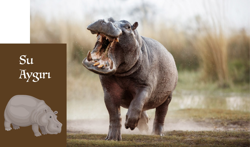 Ağırlıkları 1 ile 4.5 ton arasında değişen, kafa ağırlıkları 450 kg’ı bulabilen, 4.5 metre uzunluğunda bir vücuda sahip olan, köpek dişlerinin uzunluğu 50 cm’yi geçen su aygırları elbette büyük hayvanlar listemize girmeliydi. Peki siz su altında 7 dakika nefes almadan kalabilen ve yavrusunu bile suda doğuran su aygırlarının aslında yüzemediğini, sadece su içindeki kum üstünde vakit geçirdiğini biliyor muydunuz?