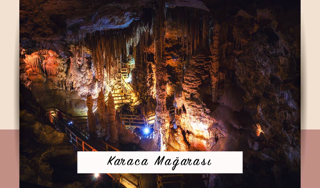 Şehirdeki başka bir doğa harikası da Torul ilçesi Cebeli köyündeki Karaca Mağarası… Uzunluğu 150 metre, ortalama tavan yüksekliği 18 metre olan mağaranın 1500 metrekareyi kaplayan alanında milyonlarca yıl içinde oluşmuş sarkıtlar, dikitler, sütunlar, damlataşlar, traverten basamaklar gibi doğal oluşumlar görenleri büyülüyor.