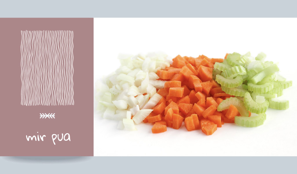 Fransızcası mire poix (mir pua) olan bu teknik için et ya da sebzelerin minik minik doğranmasıdır dediğimizde bir çırpıda anlaşılacaktır.