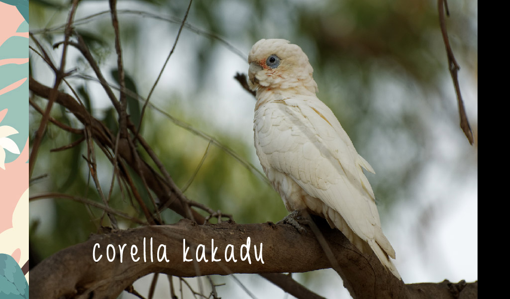 Bir diğer kakadu türü corella ise düz beyaz tüyleriyle oldukça sade bir görünüme sahiptir. Buna karşılık evde beslendiğinde en çok ilgi isteyen papağan türlerinden biridir. Oyun oynamayı çok seven corella beklediği ilgiyi görmediğinde huysuz tavırlar sergileyebilir. Bu nedenle bulunduğu alanın oyuncaklarla donatılması tavsiye edilmektedir.