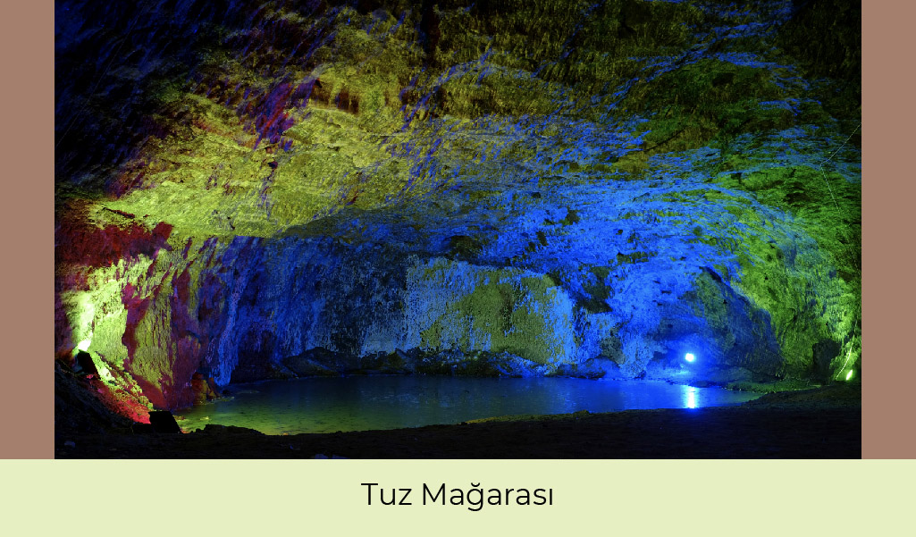 Dünyanın en eski tuz madenlerinden olduğu bilinen Tuz Mağarası şehrin merkezinde bulunuyor. 5 bin yıl öncesine kadar tuz çıkarıldığı düşünülen mağara kısmi aydınlatma yapılarak ziyarete açılmış. Mağaranın sağlık ve kültür turizmine fayda sağlayacak biçimde hizmete sunulması için proje çalışmaları da devam etmekte.