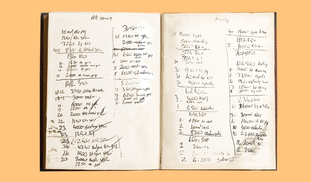 Her esnaf dükkanında “Veresiyemiz Yoktur” tabelası bulunsa da bir veresiye defteri de bulunur. Karışık listelerle, üzeri çizilmiş rakamlarla dolu bu defter dükkanın en değerli eşyasıdır.