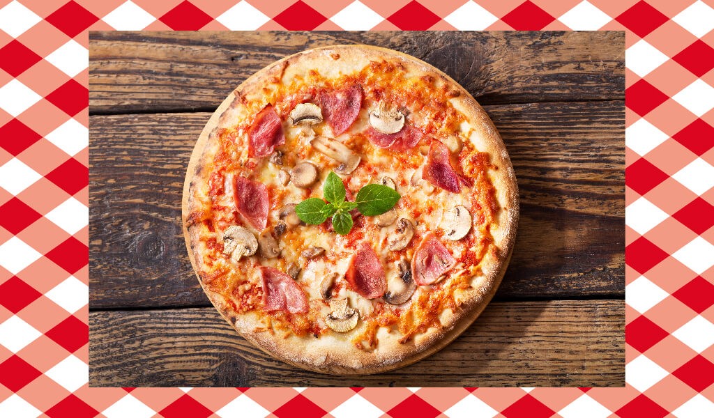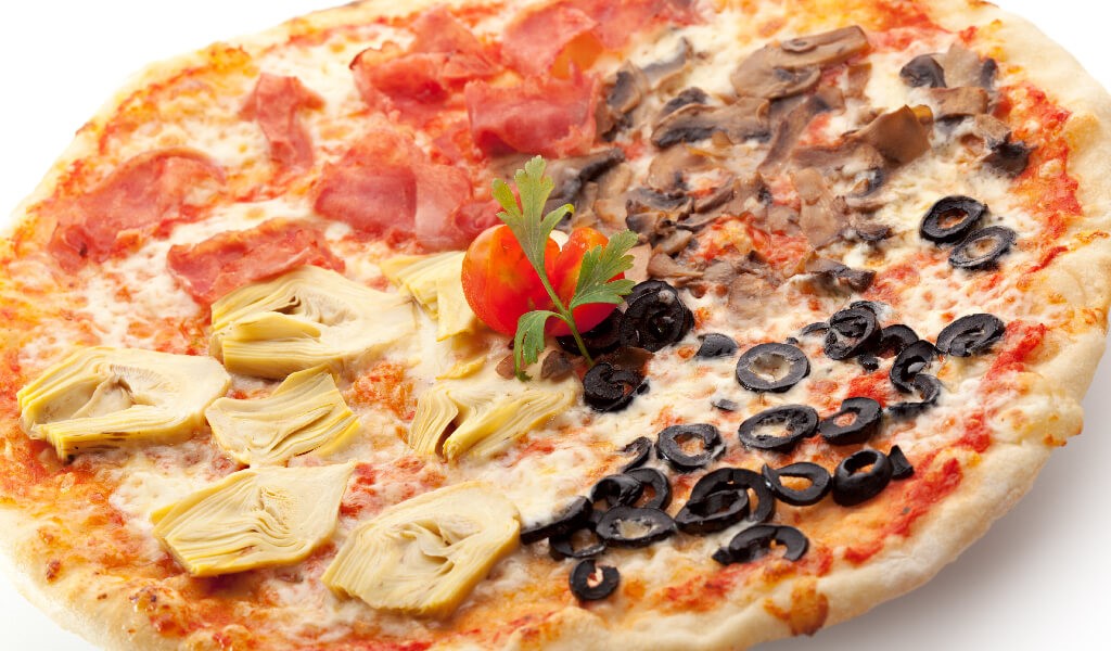 Tek başına bir öğün olabilecek bu pizza tarifinde protein ve vitaminler buluşuyor. Domates sosunun üzerine dört bölüm halinde çok az haşlanmış enginar parçacıkları, sotelenmiş mantar, jambon dilimleri ve zeytinleri yerleştirin. Pizzanızın üzerini rendelenmiş peynir ile kaplayıp, fırına verin.