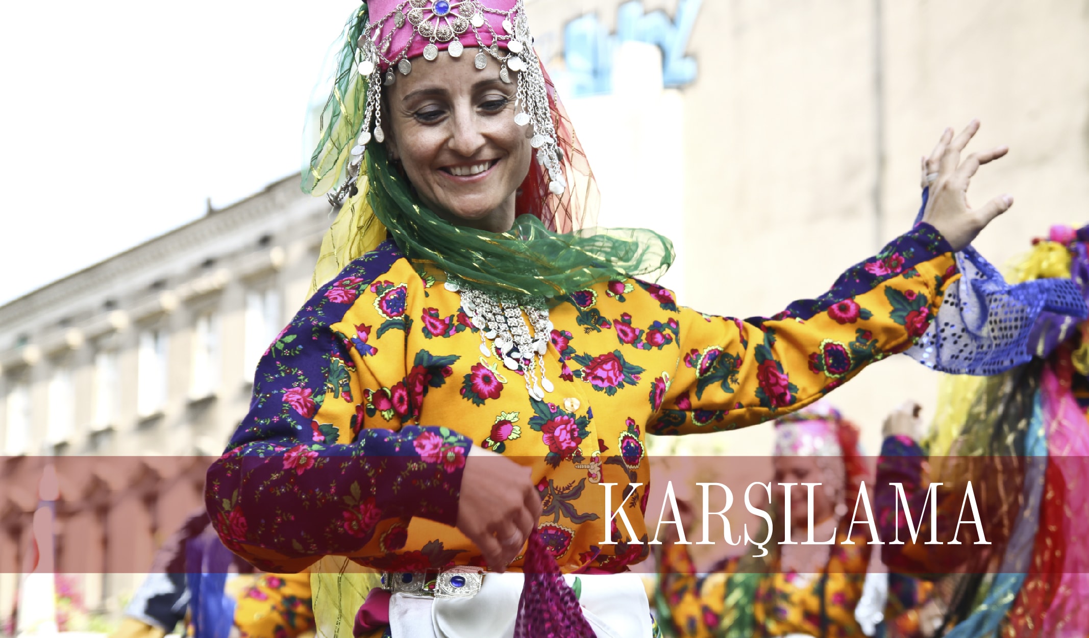 Kişilerin karşılıklı durarak oynadıkları “karşılama” Marmara Bölgesinde özellikle Trakya’da oynanır ve çoğu içinde 9/8’lik ritim barındırır. Grup olarak oynanacak ise kız ve erkek çiftler karşılıklı olarak iki sıra oluşturur fakat birbirlerine tutunmazlar. Ellerde mendil tutulduğu da olur ve davul, zurna, klarnet eşliğinde sekerek karşılamaların en güzeli yapılır.