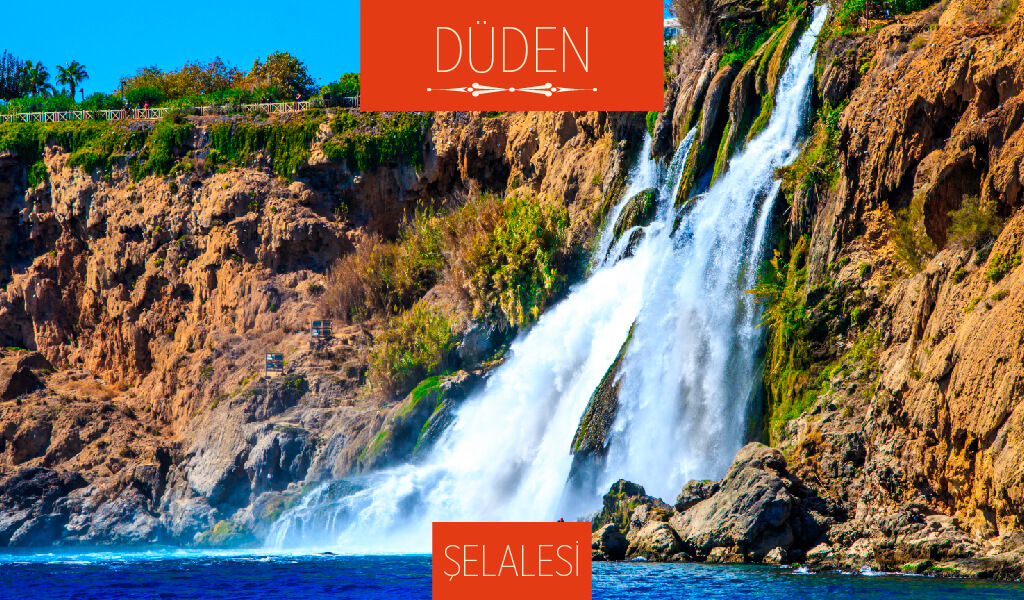 Antalya’nın sembolleri arasında yer alan Düden Şelalesi şehir merkezine yaklaşık 10 km mesafede bulunur. Şelale, çay boyunca Yukarı Düden ve Aşağı Düden olarak iki farklı kola ayrılıp, 40 metrelik falezden Akdeniz’in sularına karışıyor. Ayrıca bulunduğu bölgedeki Gençlik Parkı, çevresindeki çeşitli restoran ve kafeler bölgeyi daha da güzelleştiriyor. Her yıl birçok farklı kesimden turiste ev sahipliği yapan Düden Şelalesi’nde bir de mağara bulunmakta.
