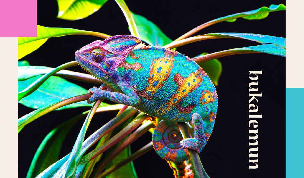 Renkler söz konusu olunca bukalemunların yeri ayrıdır çünkü onlar yaşamları boyunca tek değil pek çok rengin sahibi olabilirler. Pembe, mavi, kırmızı, turuncu, yeşil, siyah, kahverengi, açık mavi, sarı, turkuaz, mor… Bir bukalemun bazen kamuflaj için bazen de duygu durumunu belli etmek için bu renklerden birine ya da birkaçına bürünebilir, hatta üstünde benekler ve çizgiler bile oluşturabilir.