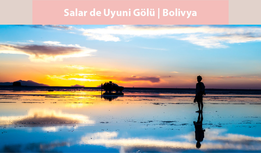 Güney Amerika ülkelerinden Bolivya’daki Salar de Uyuni Gölü kapladığı 10.582 km2’lik alanla dünyanın en büyük tuz gölü. Deniz seviyesinden 3.653 metre yüksekte bulunan göl tam bir doğa harikası. Aynı zamanda tuz kristallerinden yansıyan güneş ışınları veya tamamen tuzdan oluşan ama buz tabakasını andıran uçsuz bucaksız yüzeyi sayesinde oldukça ilginç fotoğraflar veren bir oluşum. Salar de Uyuni’de 10 milyar ton tuz bulunduğu düşünülüyor ve yılda 25 bin tonu çıkarılarak dağıtımı yapılıyor.