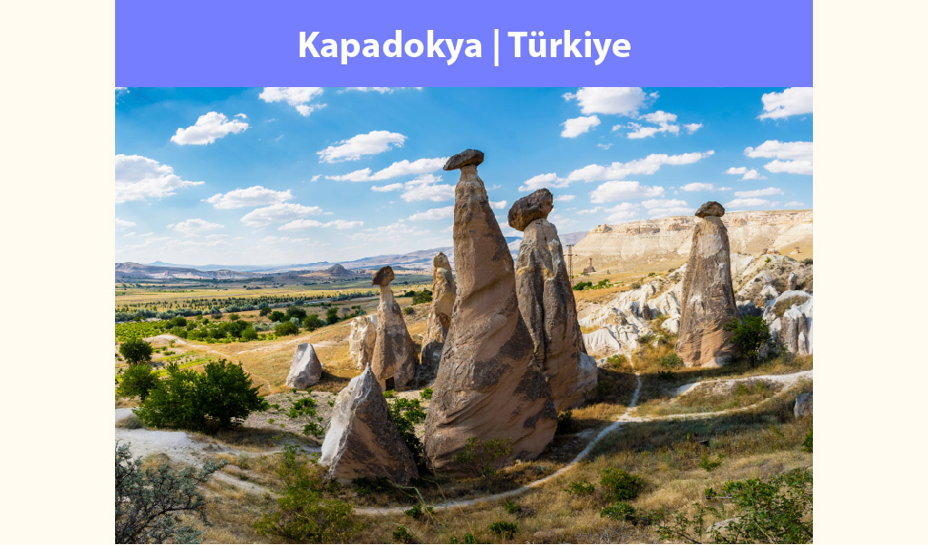 Dünyanın en özel doğa manzaralarından birinin adresi de Türkiye’deki Kapadokya Bölgesi. Ülkemizin medarıiftiharı olan bölgenin oluşumu 60 milyon yıl önceye giden doğa olaylarına dayanıyor. Bölgedeki dağların püskürttüğü lav ve küllerle ortaya çıkan bu fantastik dünyada vadiler, peri bacaları başlı başına ilgi sebebiyken, yumuşak kayalara oyulmuş kiliseler, evler bambaşka bir dünyanın kapılarını aralıyor. Kapadokya bölgesi birkaç ili kapsayan çok geniş bir alanı ifade ediyor fakat özellikle Nevşehir oluşumun yoğunlaştığı yer olarak bir adım öne geçiyor.