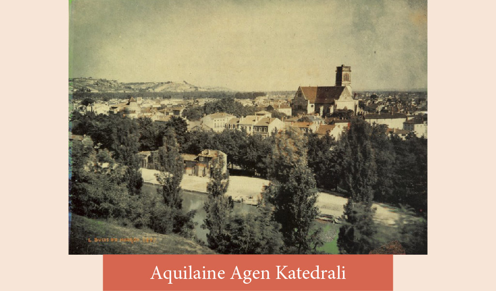 Başlarda sadece siyah beyaz olan fotoğraflar 19. yüzyılın ortalarında renklenmeye başlar. İlk renkli fotoğraf Thomas Sutton tarafından, mavi, yeşil ve kırmızı filtreler kullanılarak çekilen ekose desenli kurdele olur. Bilinen ilk renkli manzara fotoğrafı ise Louis Arthur Ducos du Hauron tarafından 1877’de çekilen Aquilaine Agen Katedrali’dir. O zamanlar renkli fotoğraf da saatler hatta bazen günler gerektiren uzun pozlamalar sonrasında elde edilmekteydi.