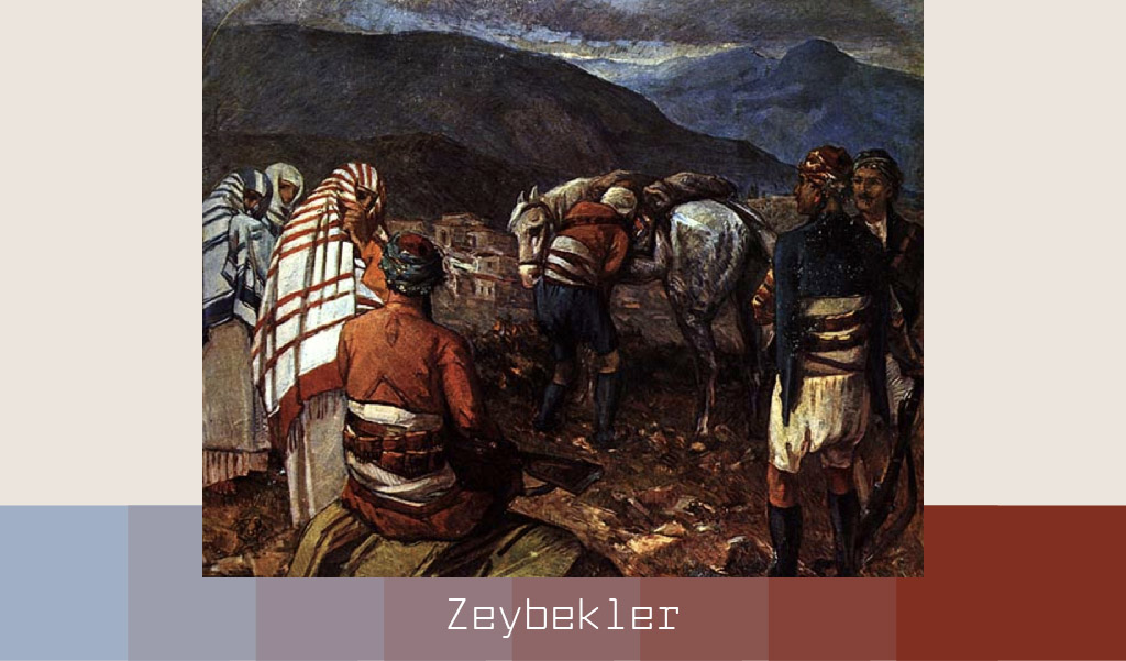 Türk ressam İbrahim Çallı’nın 1923 yılında yaptığı Zeybekler veya Zeybekler Kurtuluş Savaşı’nda isimli resminde savaşa gitmek için hazırlık yapan bir grup zeybek ile onları uğurlamaya gelen kadınlar tasvir edilmiştir. Resimdeki odak noktası beyaz atına eşyasını yüklemeye çalışan zeybektir. Bir tarafında karşılıklı konuşan iki zeybek, diğer tarafında oturduğu yerden kadınlarla konuşan başka bir zeybek bulunmaktadır. Arka planda ise sıradağlar yükselmekte, dağların eteğinde bir köy görülmektedir.