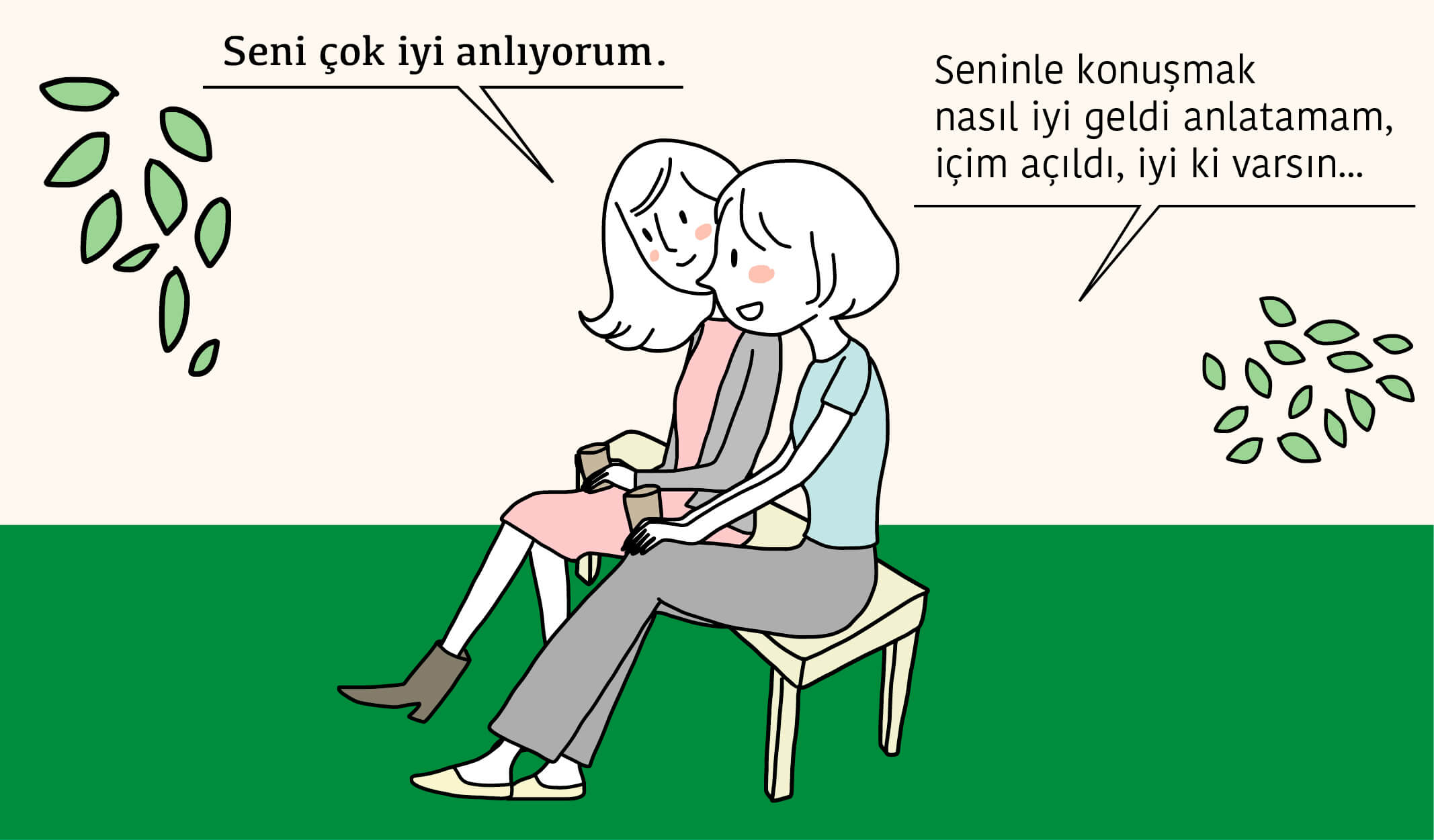 Ne zaman isterseniz gidebileceğiniz bir sığınaktır. Baş etmeniz gereken bir sorun olduğunda açıklama yapmak zorunda hissetmemek, yanında saatlerce susabiliyor ve buna rağmen yine de anlaşılıyor olmak paha biçilmez bir terapi biçimidir.