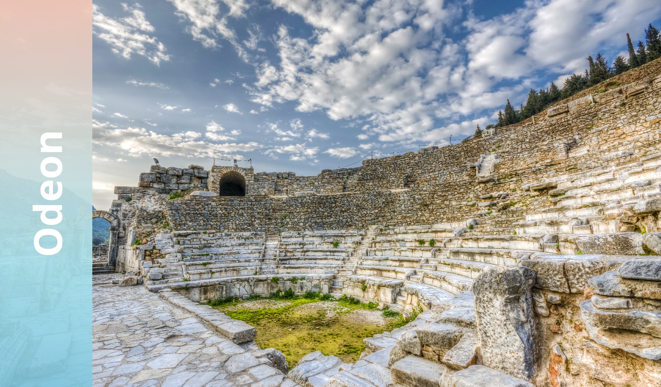 Günümüzde klasik müzik konserlerinin düzenlenebildiği Odeon, “Eski Yunan’da müzisyenlerin konser verdiği basamaklı yer” anlamına geliyor. Efes’teki 1400 kişilik odeonda eskiden de meclis toplantıları yapılır, tiyatro, konser etkinlikleri düzenlenirmiş.