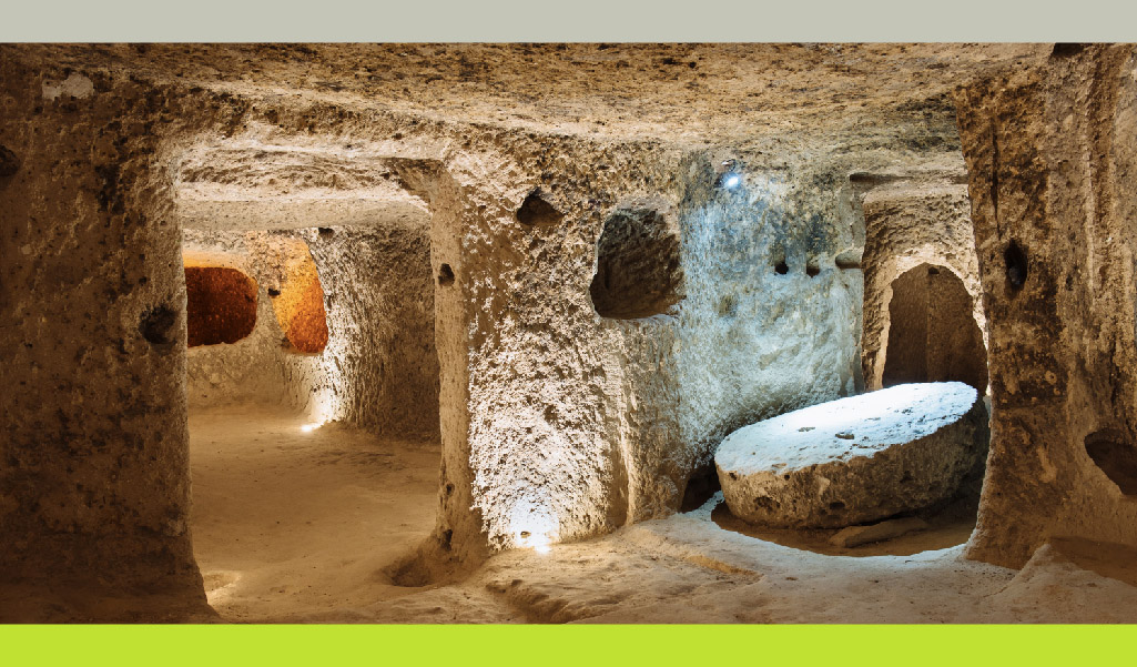 Burası Kapadokya bölgesindeki Nevşehir’in Derinkuyu ilçesinde yer altına inşa edilmiş şimdilik 8 katlı bir şehir. Şimdilik diyoruz çünkü şehrin derinlere doğru devam ettiği de biliniyor. İçinde yaşam alanlarından depolara, ibadet yerlerinden akıl hastanesine birçok bölüm barındıran ve 50 bin kadar insanın yaşayabileceği Derinkuyu Yer Altı Şehri’nin özellikle ilk Hristiyanlar tarafından Roma İmparatorluğu’nun saldırılarından korunmak için kullanıldığı tahmin ediliyor. İlk inşa dönemi hakkında kesin bir bilgi bulunmayan yer altı şehrinin gizemli giriş kapısı ise 1963 yılında yine bir tesadüf sonucu bulunmuş.