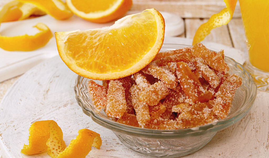 Portakal kabuklarını değerlendirmenin en güzel yolu olan portakal şekeri, kabukların büyük tencerelerde kaynatılması ve sonra tatlandırılmasıyla elde edilir. Şekercilerden de satın alabileceğiniz portakal şekerini yediğiniz portakalların kabuklarını biriktirerek evinizde de yapabilirsiniz.