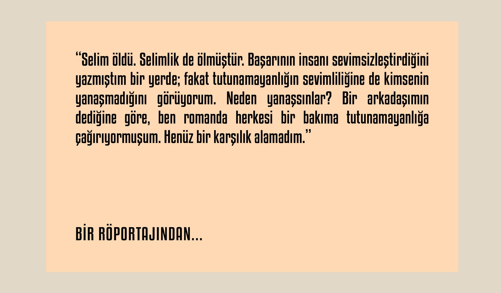 Henüz 43 yaşında hayata veda eden yazar, bu yıl 46. ölüm yıl dönümünde anılıyor. Bir insanın doğum günü sayısı kadar ölüm yıl dönümü hatırlanmışsa, evet o kişi henüz ölmemiş demektir. En büyük projesi olarak gördüğü “Türkiye’nin Ruhu”nu hiç yazamamıştı. Hiç düşündünüz mü? Ya yazılsaydı?
