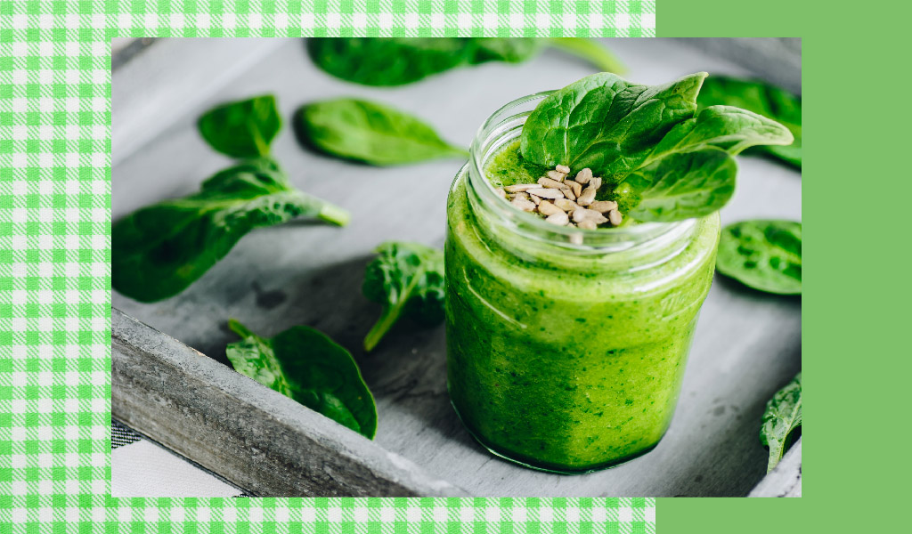 Sindirim sistemine faydalı olan yeşil smoothie için malzemeler; üç adet orta boy yeşil elma, 200 gr körpe ıspanak, taze zencefil ve 100 gr yoğurt… Tatlandırmak için bir tatlı kaşığı bal ekleyerek, bağışıklık sistemine de katkı sağlayabilirsiniz. Vejetaryen beslenenler için yoğurt yerine yarım su bardağı demlenmiş yeşil çay tercih edilebilir.