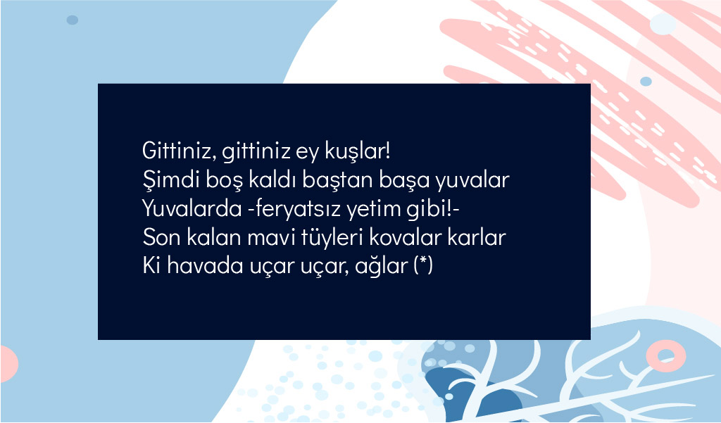 Mahlas/takma ad kullanımının yaygın olduğu dönemlerde “Yahya Kemal” adını alan edebiyatçımızın asıl adı Ahmed Agâh’tı. 1884 doğumlu şair Soyadı Kanunu ile de “Beyatlı” soyadını aldı. O, Divan şiirini, modern Türk şiiri ve Batı şiirini eserlerinde mükemmel bir biçimde sentezleyen büyük bir şair, düşünce ve kültür adamıydı. Bu listemizde 20. yüzyılın Türk şairlerinden Yahya Kemal Beyatlı’yı ağırlıyoruz.